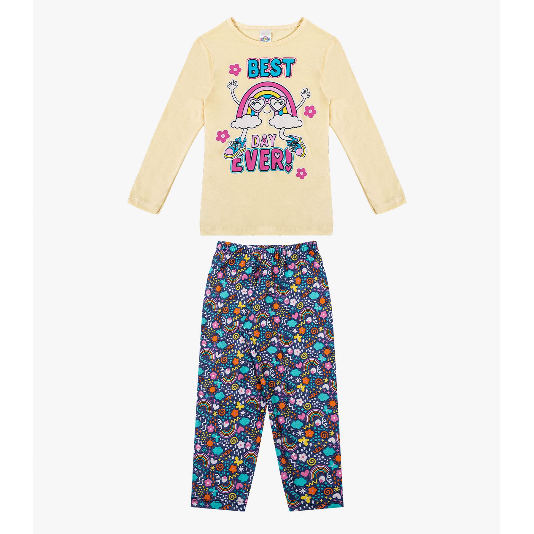 Pijama Menina Manga Longa Brilha No Escuro Kappes Amarelo
