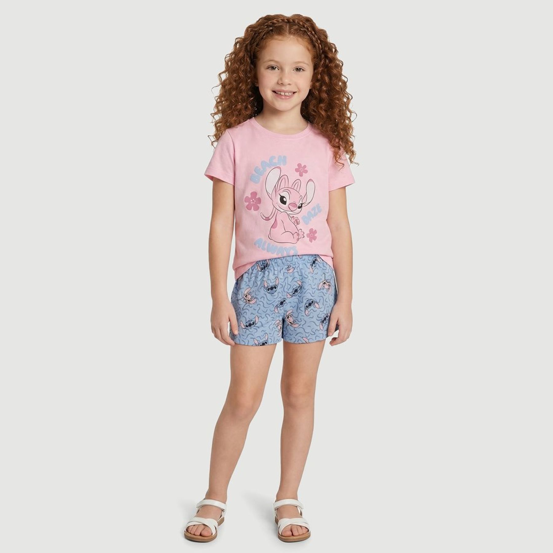 Pijama feminino short doll Stitch Angel creme - Disney