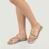 Rasteira Feminina Slide com Tiras E Strass Dourada