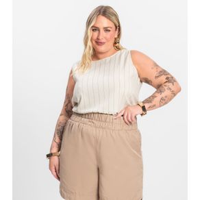 Regata Feminina Plus Size em Visco Secret Glam Bege