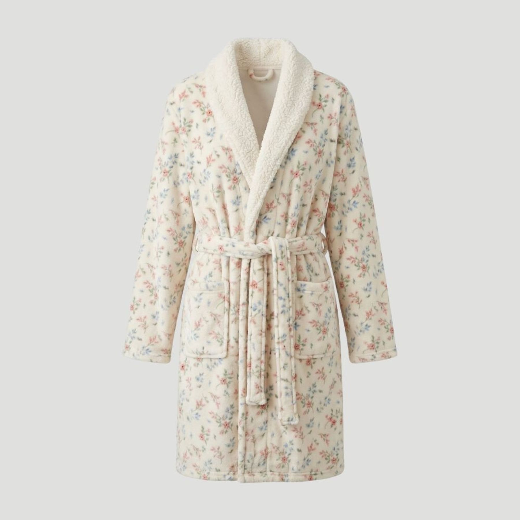 Roupão Microfibra Feminino Sherpa Flora com Bolso P