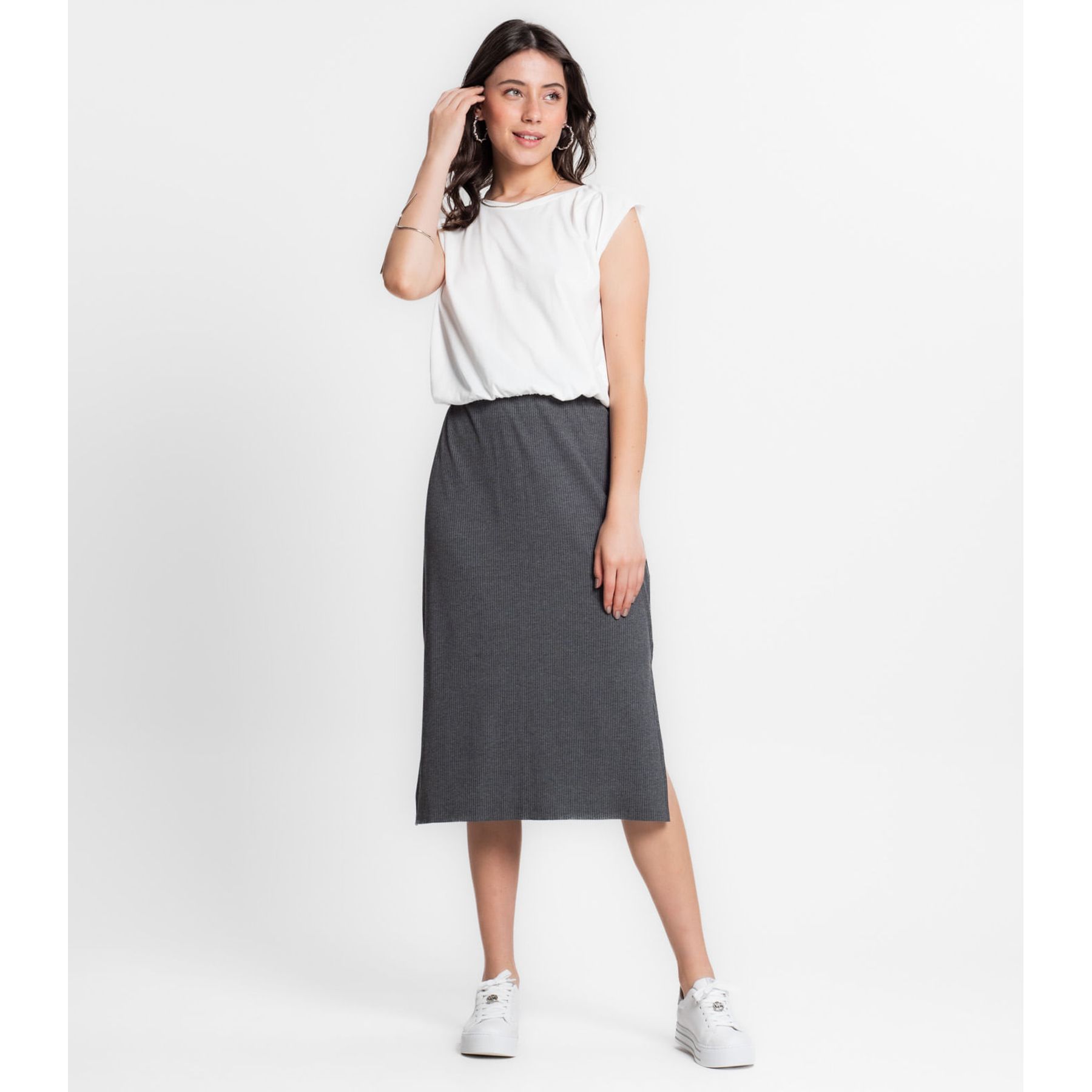 Saia Feminina Midi Evase Dianna Cinza