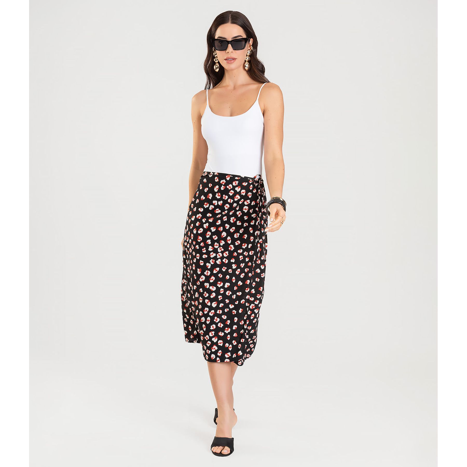 Saia Midi Feminina Duas Marias Em Viscose Dianna Preto