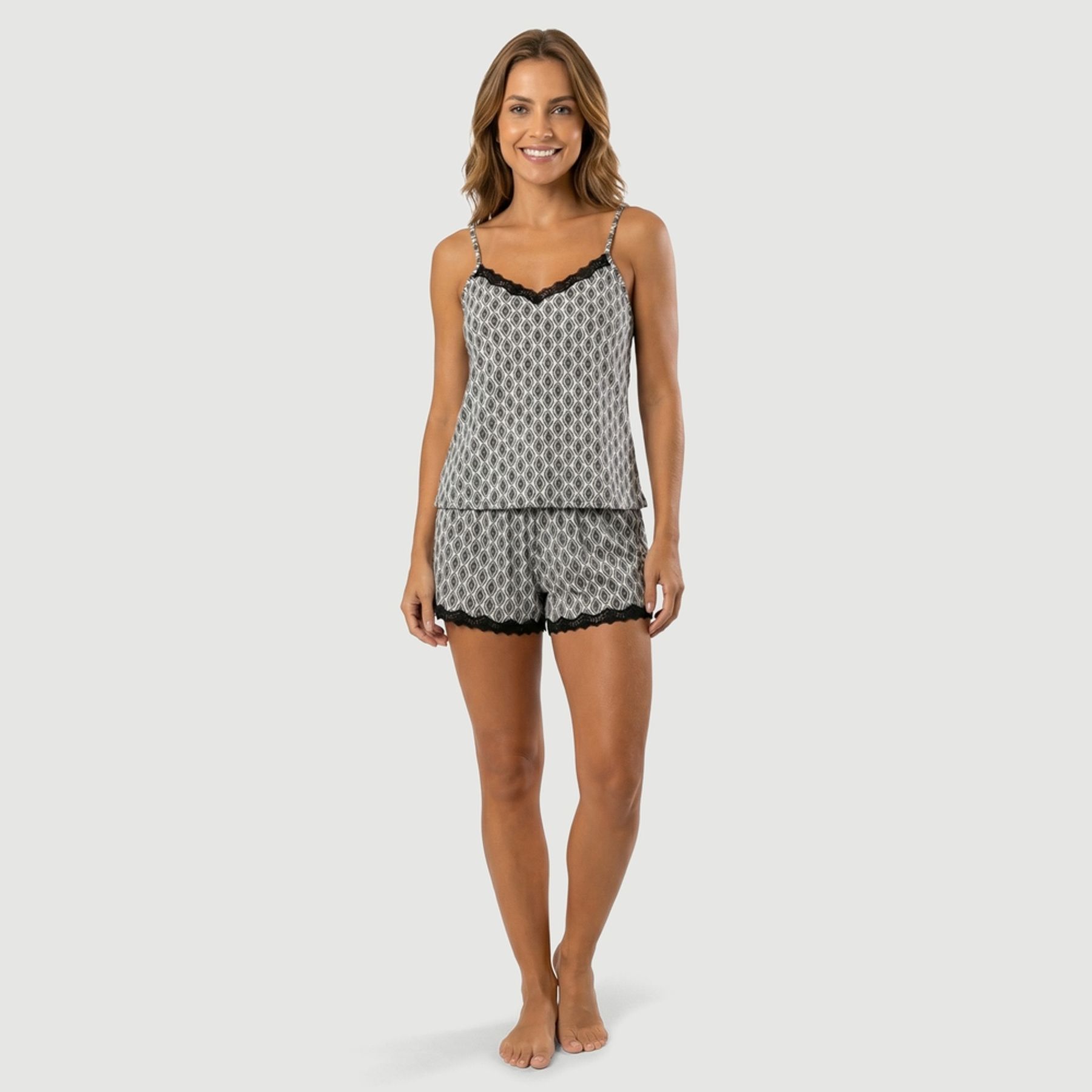 Economia de R$ 57,60O short doll feminino Uniq é ideal para dormir ou relaxar em casa, unindo praticidade e delicadeza. O conjunto vem com blusa de alcinha fina e short soltinho, confeccionados em composição mista com predominância de poliéster, oferecendo bom caimento. A blusa tem decote em V com renda no acabamento, e o short conta com cós elástico e renda na barra, trazendo um toque feminino ao visual.