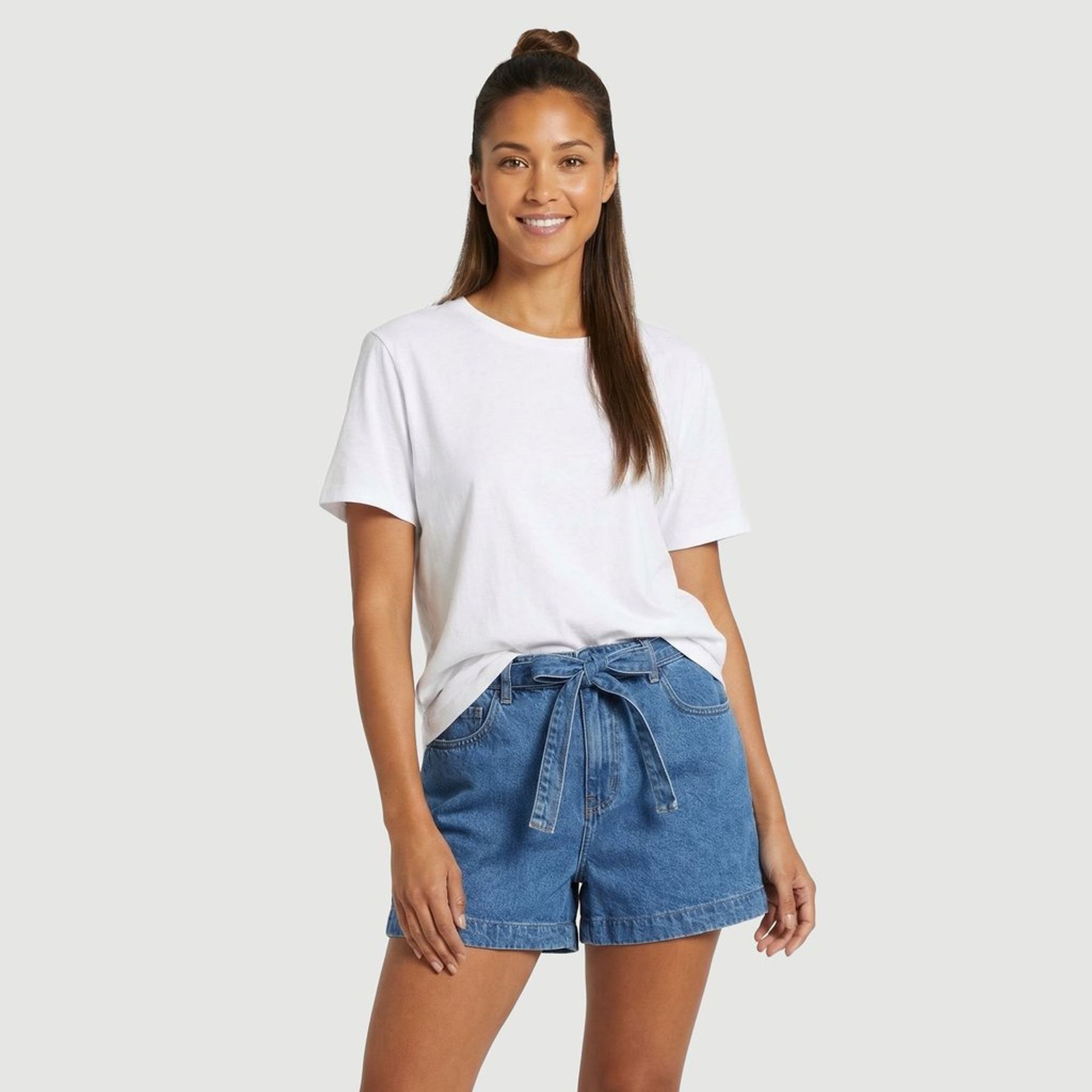 Short Jeans Feminino Curto Barra Dobrada Azul - Sawary