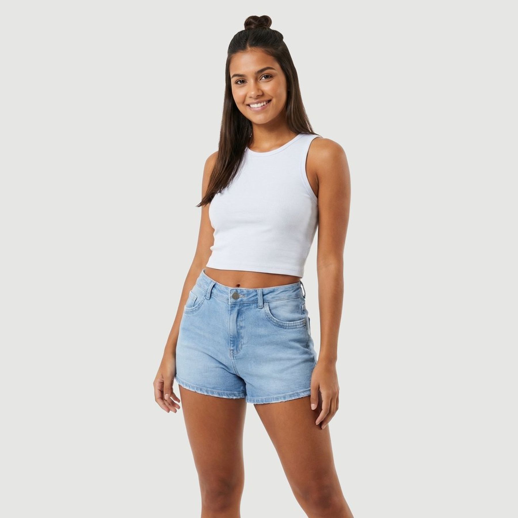 Short Jeans Feminino Curto Barra Dobrada Azul - Sawary