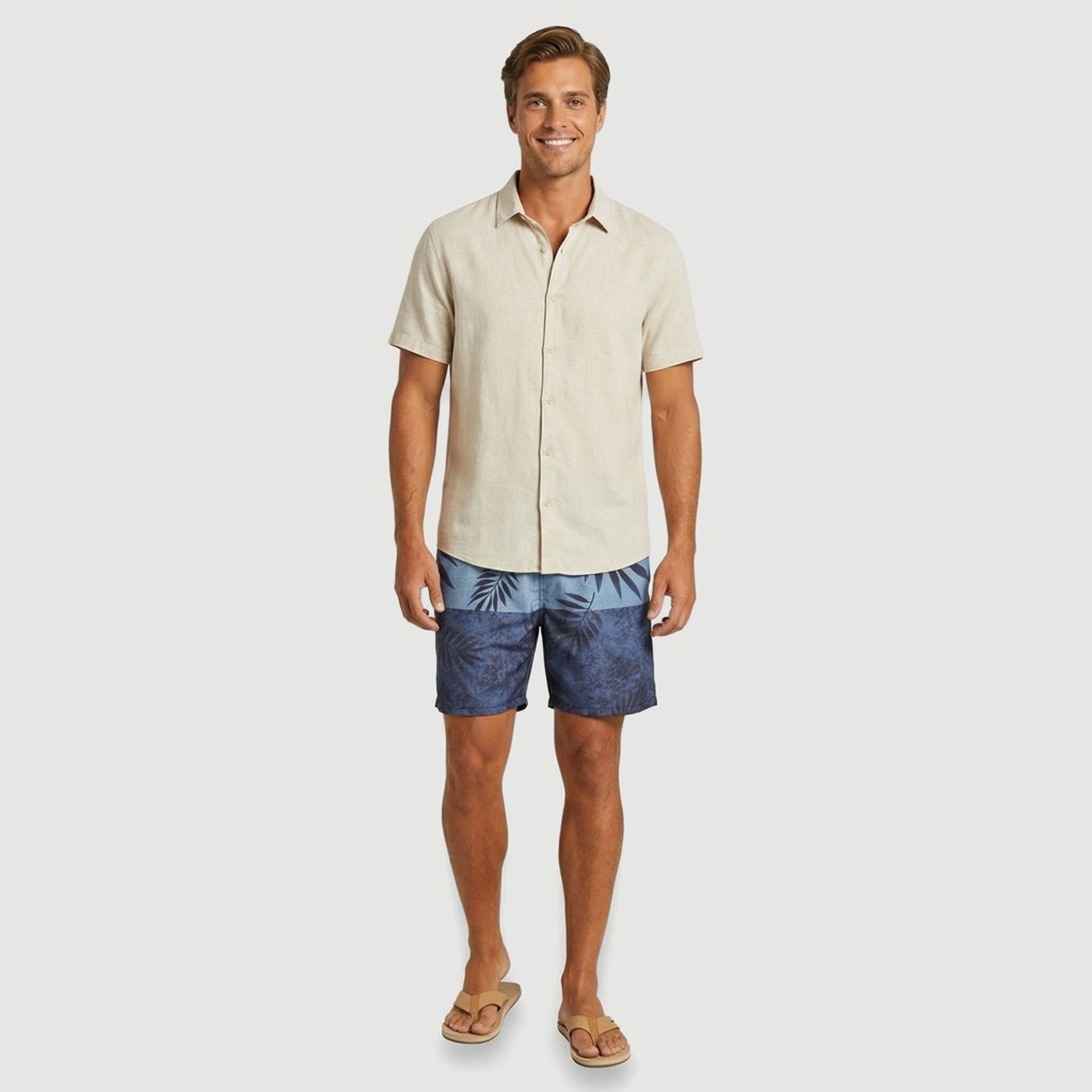 Short Masculino Praia Taslon Liso Bege - Id Praia
