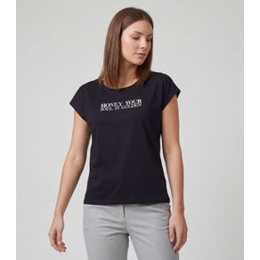 Blusa Feminina Manga Curta Estampada Infinita Cor Preto