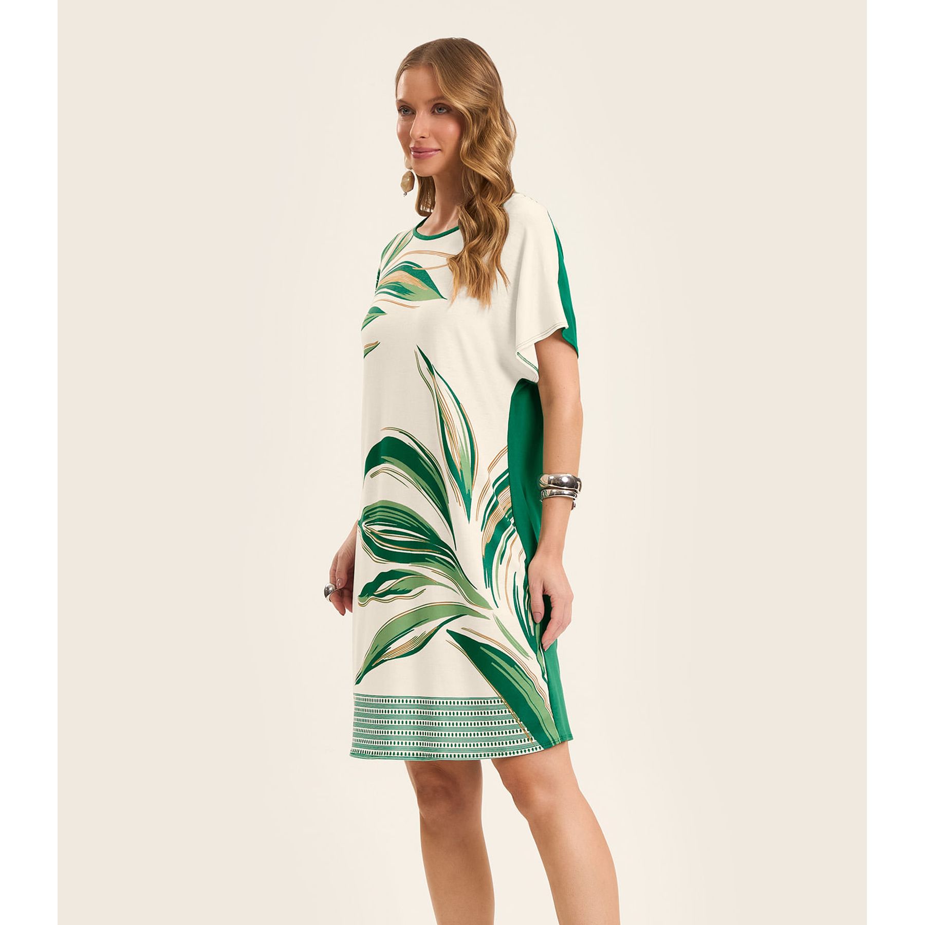Vestido Manga Curta Estampado Laranja - Viva Casual