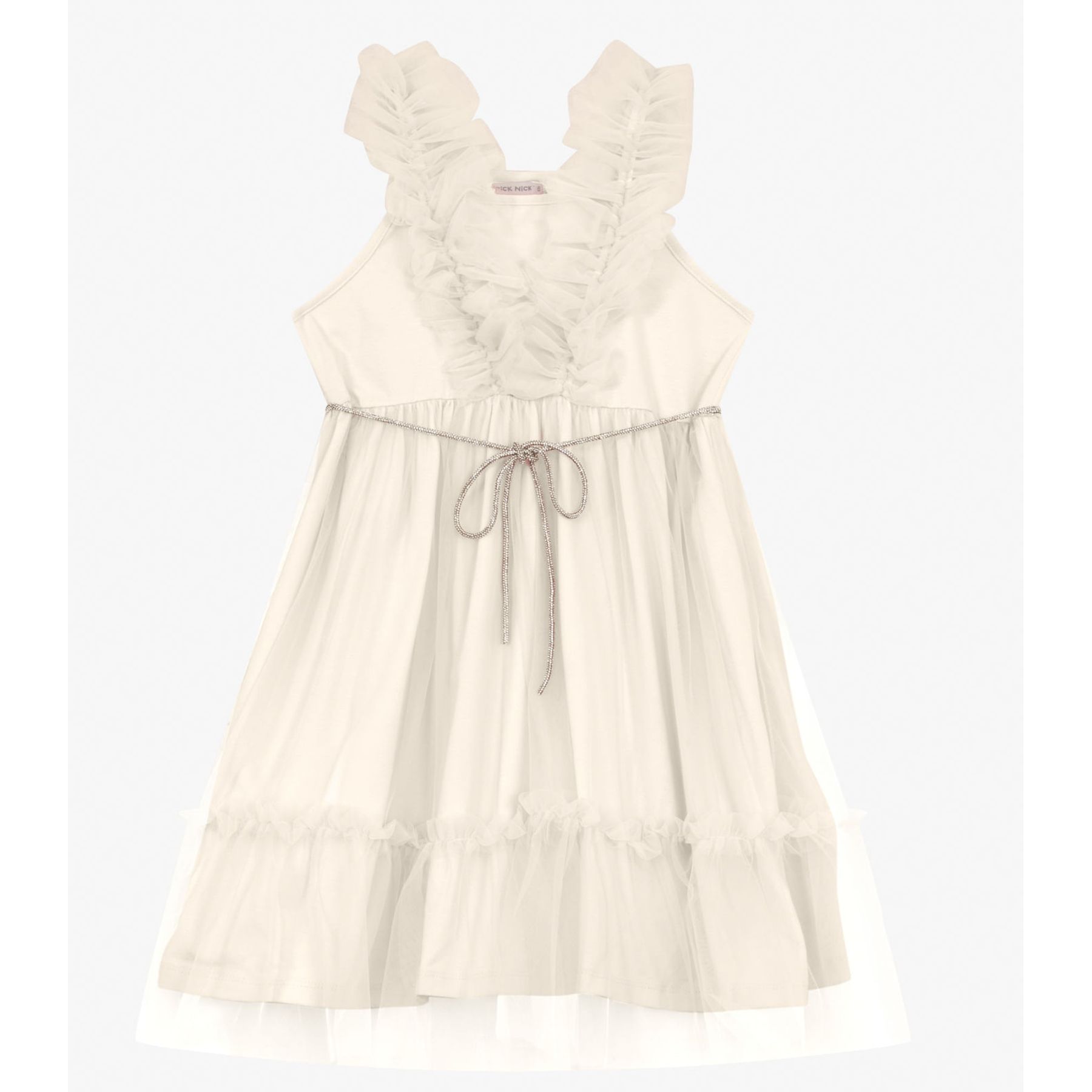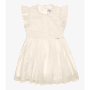 Vestido Infantil Tule Bordado Trick Nick Bege