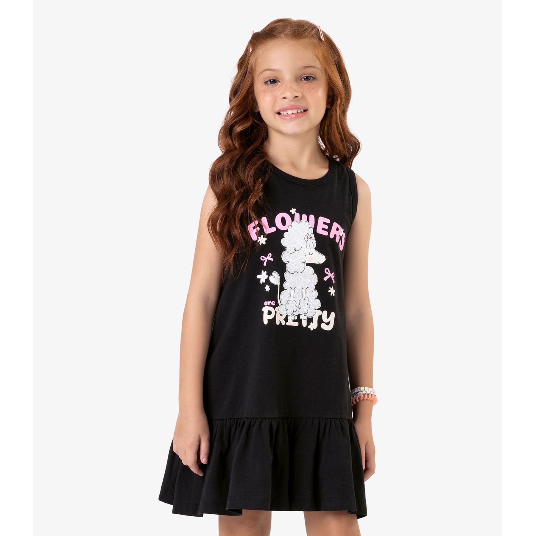 Vestido Infantil Manga Curta Estampado Biju Kids Rosa
