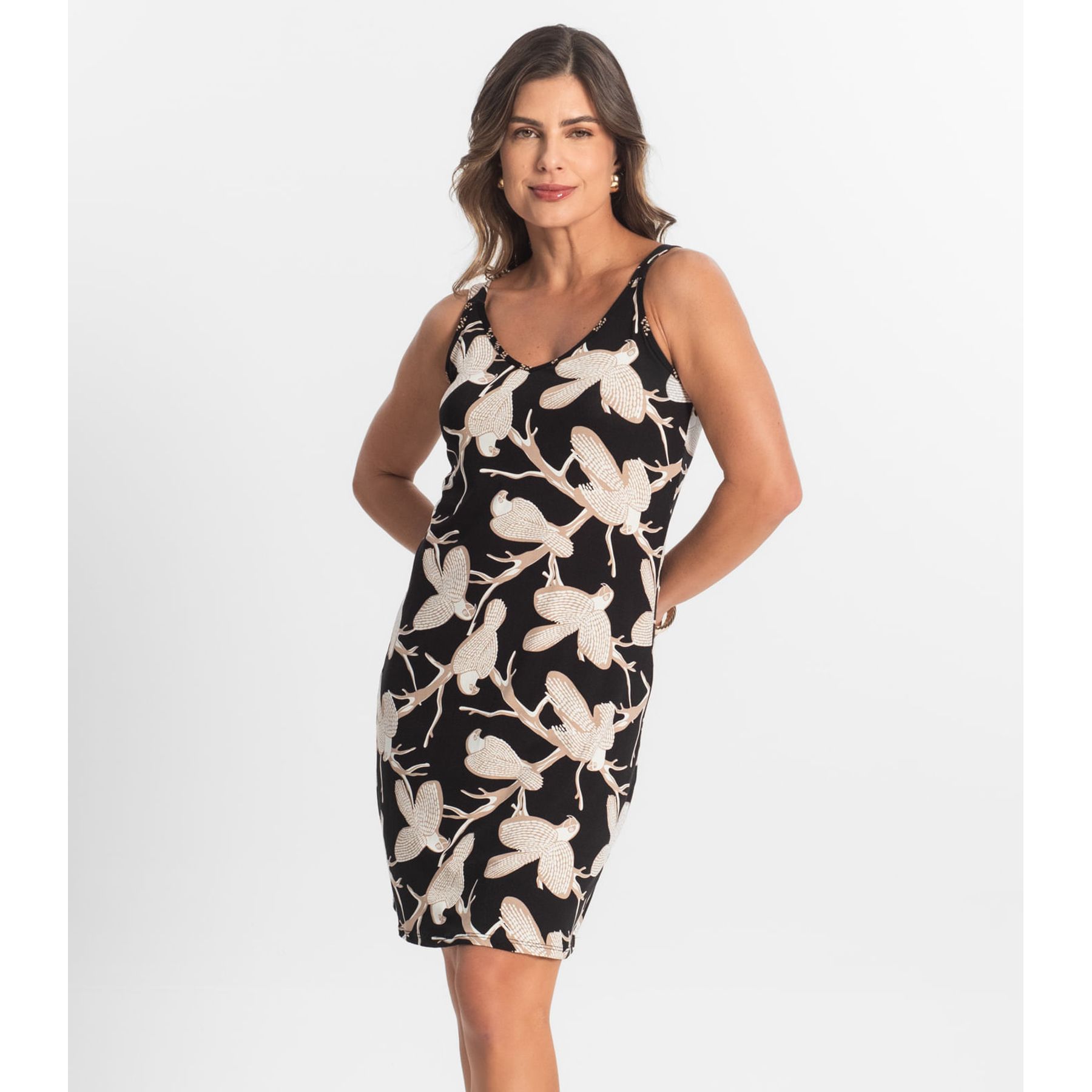 Vestido tubinho sem mangas marrom - Viva Casual