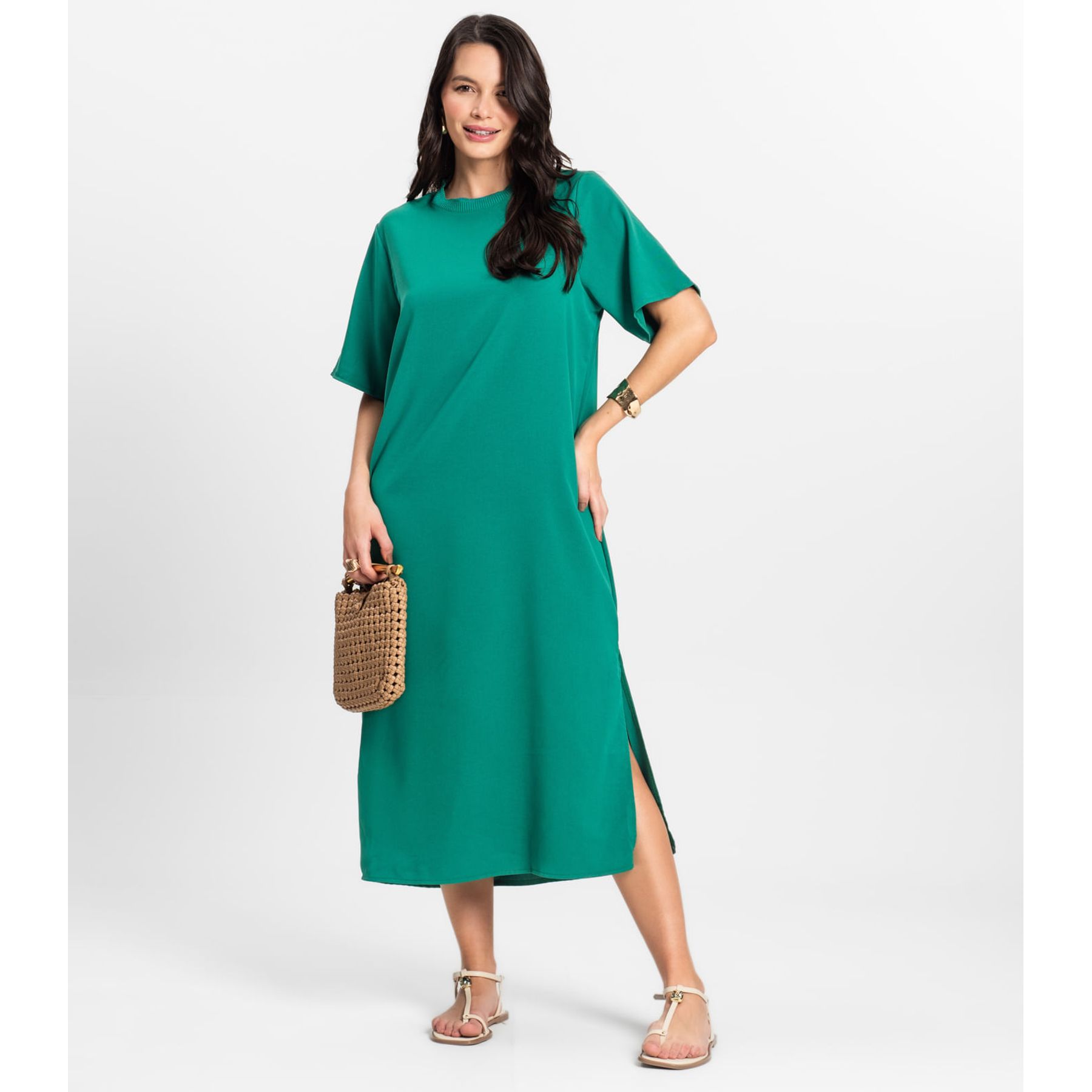 Vestido Midi em Ribana Rovitex Verde