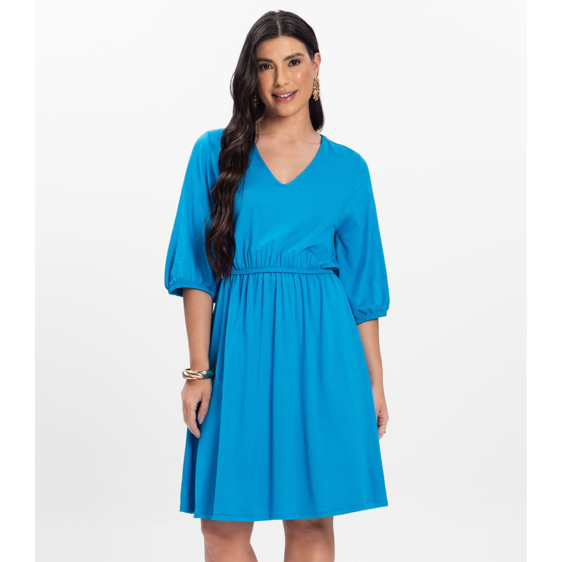Vestido Feminino Ciganinha Inteiro Manga Curta Jeans Claro Liso - INK