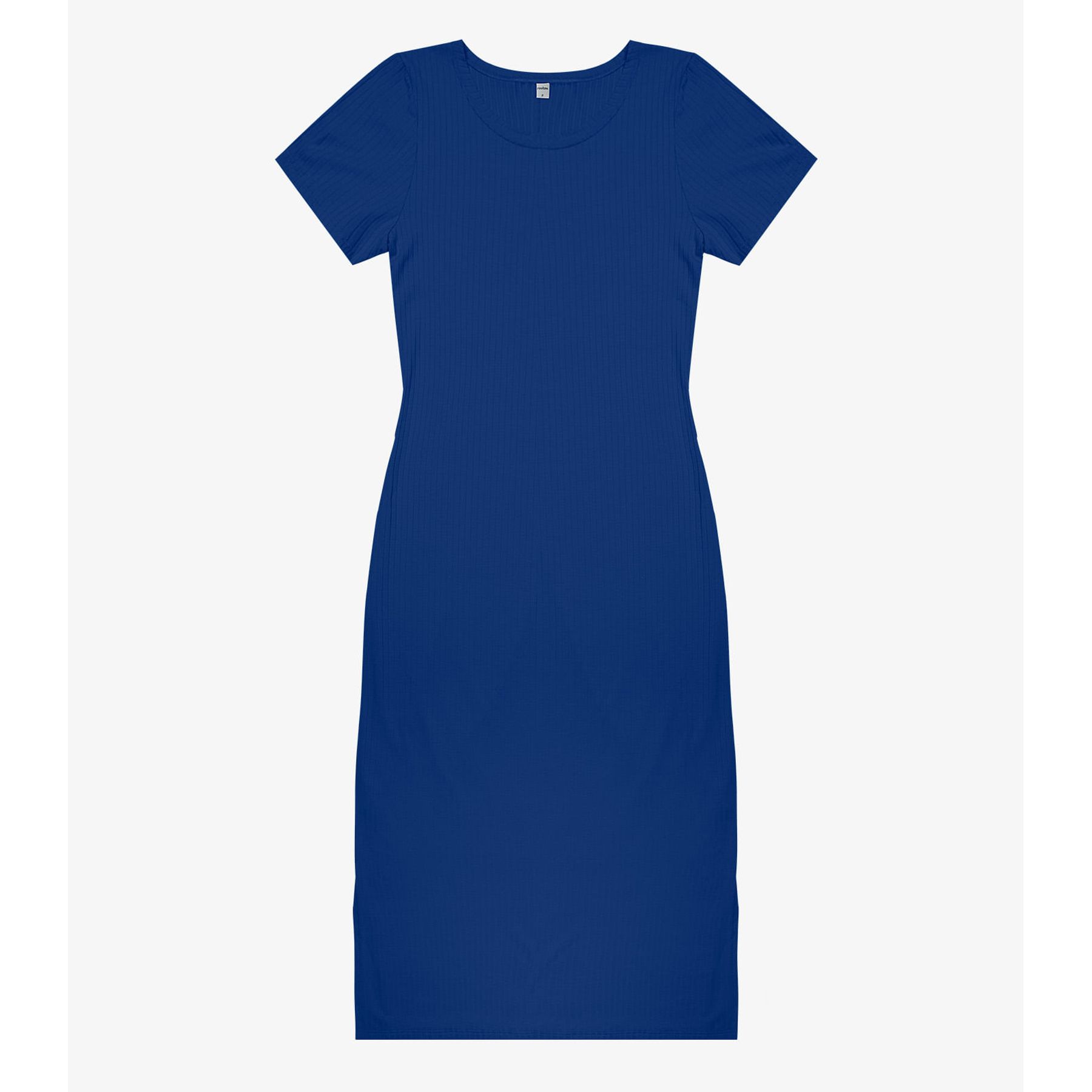 Vestido Midi Ribana Canelada Básico Rovitex Azul
